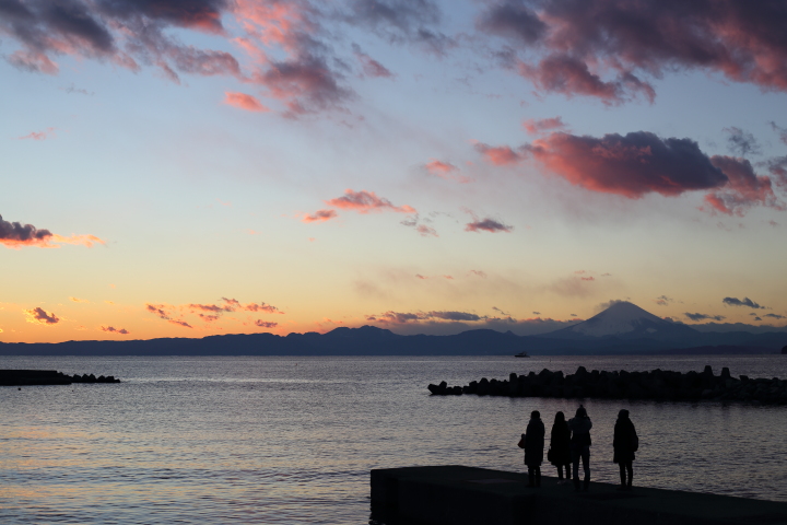 葉山の小さい丘を歩いて、トワイライトの美しい海辺を歩いて来ました。