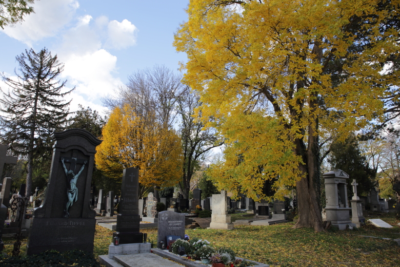 きれいな新しいウィーン中央駅から朝の列車で隣の駅まで5分ほど。そこから路面電車にちょこっと乗って、ウィーン中央墓地へ。