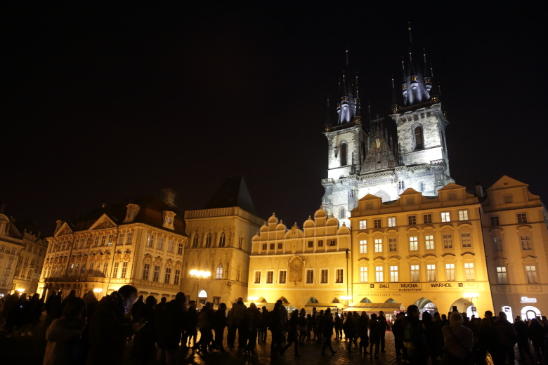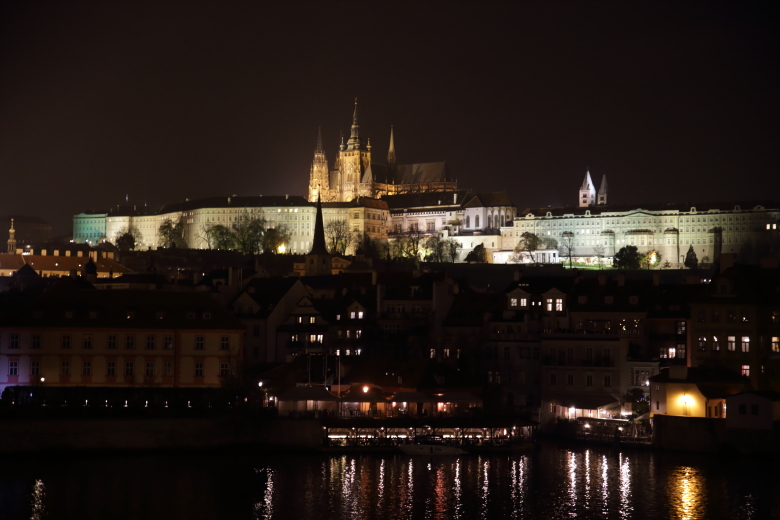 カレル橋という有名な橋を通って夜のプラハ城を眺めながら向かいます。