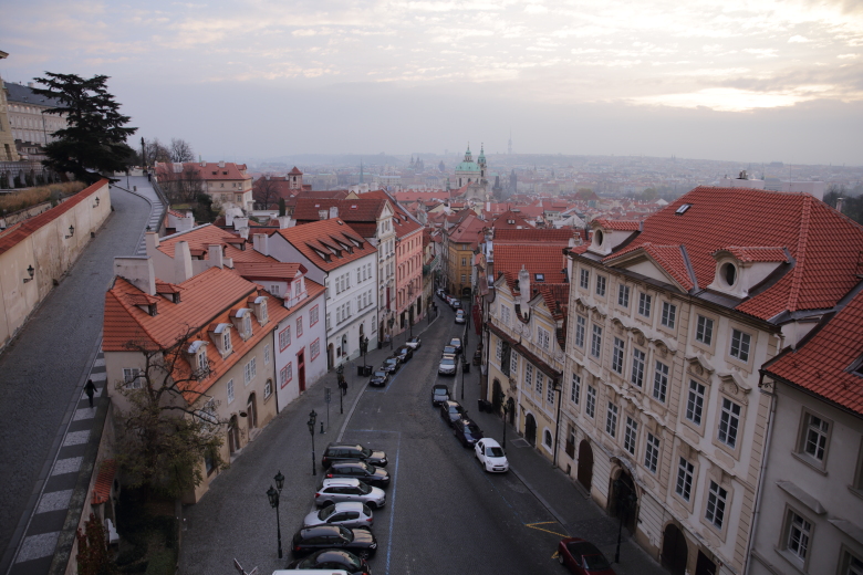 翌朝のホテルの部屋からのプラハの風景。