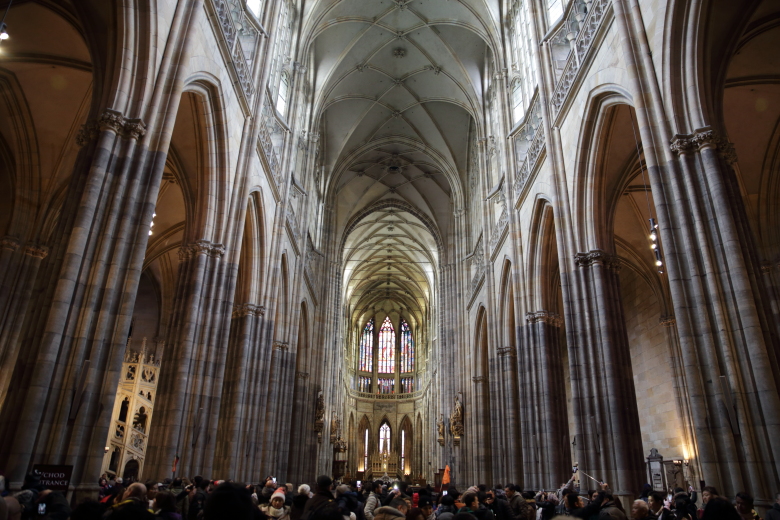 朝から混雑しているプラハ城の大聖堂。