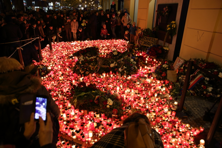 そしてテレビカメラとすごい人混みの方へ行ってみれば、追悼の場所に着きました。