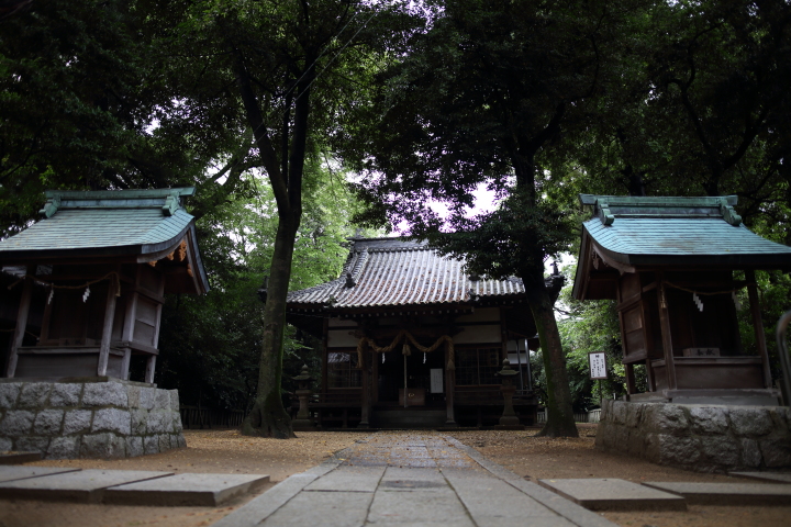 鬱蒼とした樹木が拝殿の上だけ晴れている感じでいい雰囲気。
